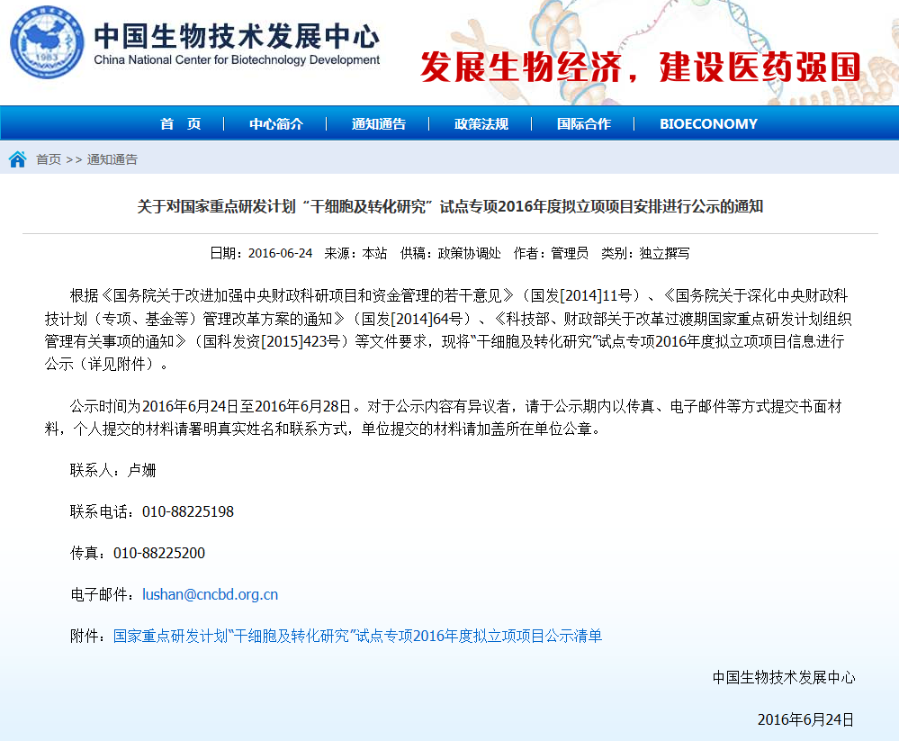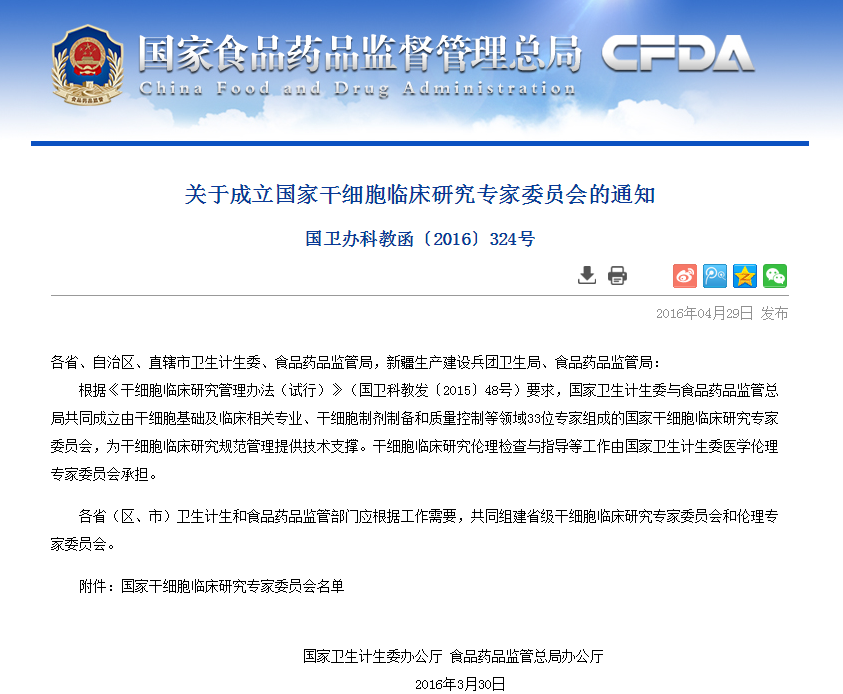 按照《干細胞臨床研究管理辦法(試行)》要求,國家干細胞臨床研究專家委員會對各地報送的干細胞臨床研究機構備案材料進行了審核,根據(jù)專家委員會意見,形成了干細胞臨床研究機構首批通過備案的建議名單(見附件)。 從即日起至2016年6月8日對擬備案機構進…